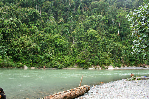 Al Green lodge és on també viuen els elefants (dels que ja us parlaré més endavant), amb els que vam conviure alegrement tots els dies. Bé, amb ells i amb el magnífic riu Batang , que separa Tangkahan del parc nacional Gunung Leuser, i que va ser la nostra segona casa. Tot just deixar les motxilles ens hi vam banyar per primera vegada, per refrescar-nos i deixar enrera la pols del camí i tanta palmera.