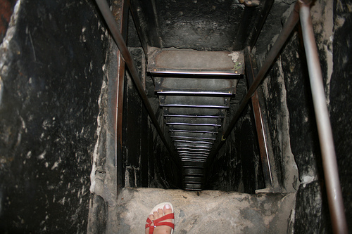 | l'única forma d'accedir al segon pis és pujant aquestes escales laterals! |