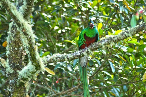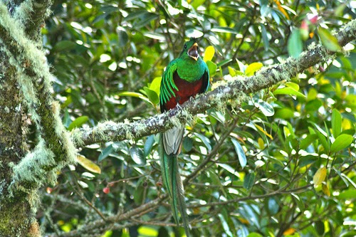 | mascle de Quetzal menjant un aguacatillo, el seu fruit preferit |