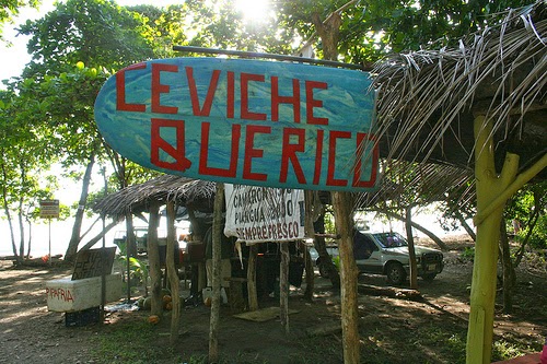 Playa Hermosa està a peu de carretera, molt a prop del parc nacional. El ceviche és un plat típic de peix o marisc, que és menja fred i ve molt de gust després de la insolació de Playa Ballena.