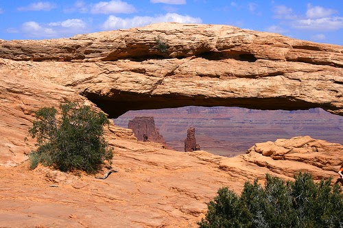 Una altra parada interessant és la petita caminada fins al Mesa Arch. Un arc format per múltiples cicles de desglaç on l'aigua s'ha anat filtrant per les esquerdes de la roca fins a crear l'arc. Amb el temps, aquest mateix procés acabarà provocant el seu trencament.