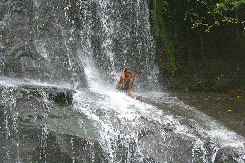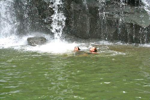 Dilluns tocava dia de relax. Al matí vam acompanyar als mahouts i als elefants durant el seu bany (dels elefants) matinal. Però d'això en parlaré a la propera entrada, dedicada als elefants. Al migdia, vam agafar la roba de riu i el banyador i vam anar a un racó espectacular: una cascada al riu Buluh (afluent del Batang). Allà ens vam banyar, vam xerrar, vam riure i, novament, els nois ens van preparar un dinar de cinc forquilles.