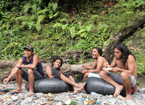 Al sortir de la cova, ja era hora de dinar i ens vam dirigir cap al riu a on ens esperaven el Jack i el Herda amb el dinar preparat, un luxe, i com sempre molt i molt bo; i els flotadors que ens portarien riu avall, relaxant-nos, fins al campament. Banyar-nos al riu i treure'ns la brutícia, la suor i la calor va ser una gran recompensa.