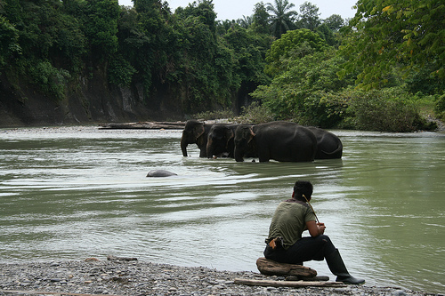 Ara ja sí, els animals poden banyar-se lliurement i jugar a l'aigua. A Tangkahan s'intenta mantenir al màxim la conducta natural dels elefants i per això són tant importants els banys al riu i les patrulles per la selva, que mantenen el contacte amb l'hàbitat i on l'animal pot triar quina planta vol menjar completant així la dieta que se'ls hi dóna.