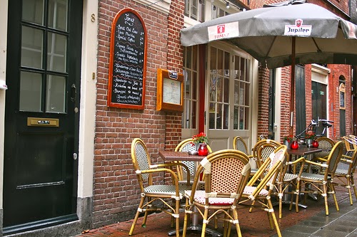 Vam fer una pausa per prendre un cafè al Hoppe, un dels famosos cafès marrons (bruin café) d'Amsterdam. El nom ve dels interiors de fusta que donen un to fosc a l'ambient. El Hoppe, que porta obert més de 300 anys, manté el terra ple de sorra perquè, segons ens va explicar el cambrer, antigament els homes mastegaven i escopien tabac a terra.