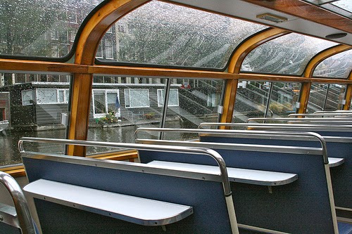 Quan vam acabar la visita a l'Oude kerk, plovia massa per passejar així que vam decidir fer un tour en vaixell pels canals (els vaixells estan coberts per un sostre de vidre). Una hora navegant pels canals més importants. El "conductor", a més, ens explica anècdotes com per exemple que les cases són tant estretes degut a un problema de fonaments ocasionat pel terreny tou a on es construïen, que totes tenen un gablet (decorat de formes molt diferents) al final de la façana amb un ganxo per a poder fer mudances o pujar objectes grans als pisos, i que les obres del metro, que ja fa anys que duren, són les culpables del caos al centre (i que suposadament acabaran en uns 7 anys).