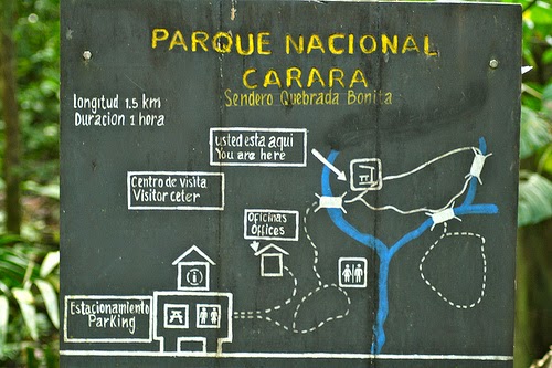 El Parc Nacional de Carara és un dels llocs on es poden veure guacamais vermells, a més d'altres molts ocells. És un parc poc conegut i petit, però un dels més bonics que vam visitar. És molt recomanable contractar un guia, ja que en saben molt i estan entrenats per veure fauna que a nosaltres se'ns hagués passat, i per avisar sobre els perills de trobar-se serps i d'acostar-se als rius on hi ha cocodrils de mida considerable.